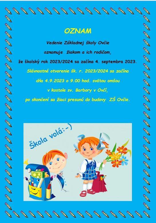 Nástup detí do školy pre šk. rok 2023/24, ZŠ a MŠ Ovčie a ZŠ Hrabkov
